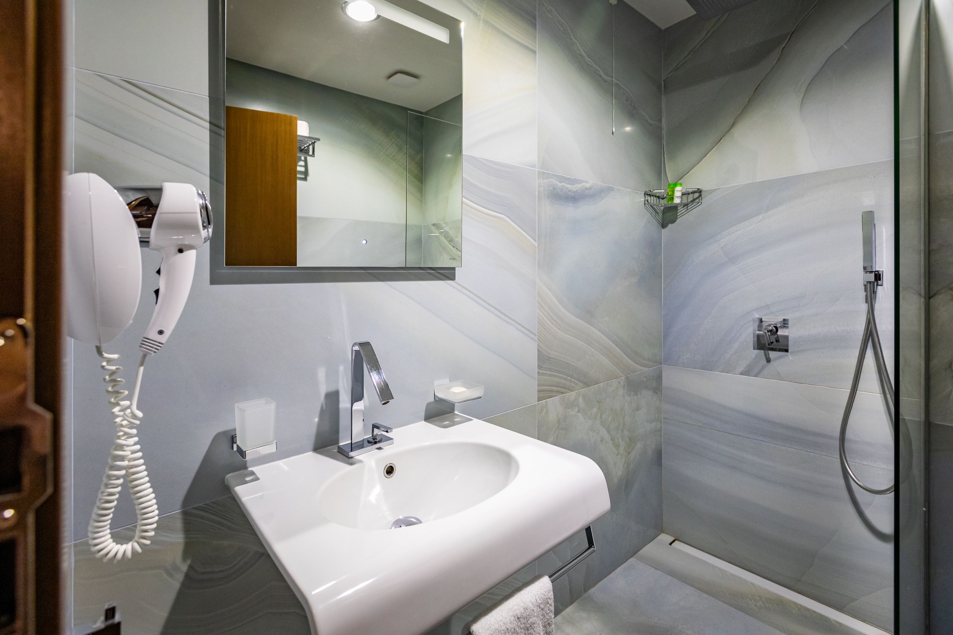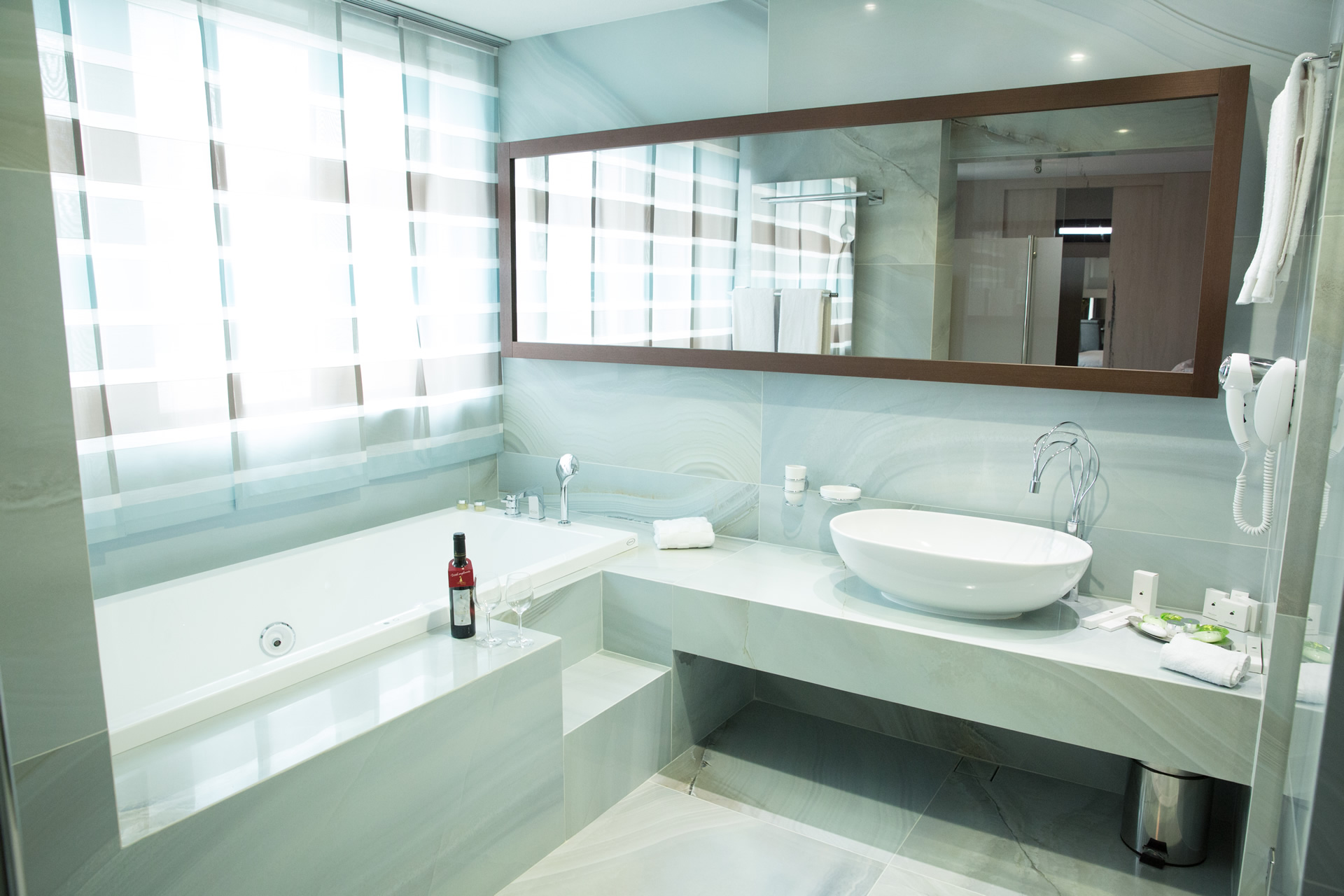 - Баня - душ или вана, сешоар, телефон, увеличително огледало, паник бутон